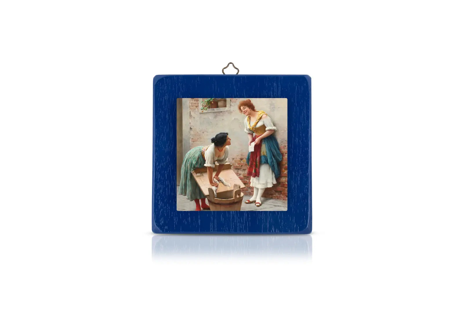Ceramic tile with a high-resolution front print, handcrafted with a glossy finish. The tile is applied to a solid wood panel.