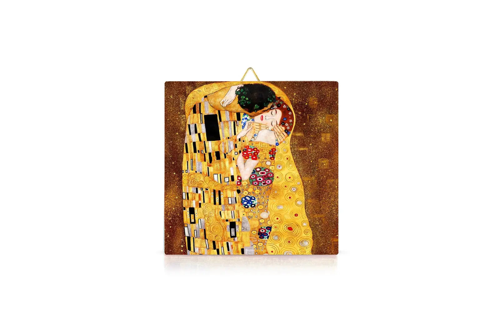 Ceramic tile with a high-resolution front print, handcrafted with a glossy finish. The back features a rubberized canvas hanger with a metal hook.